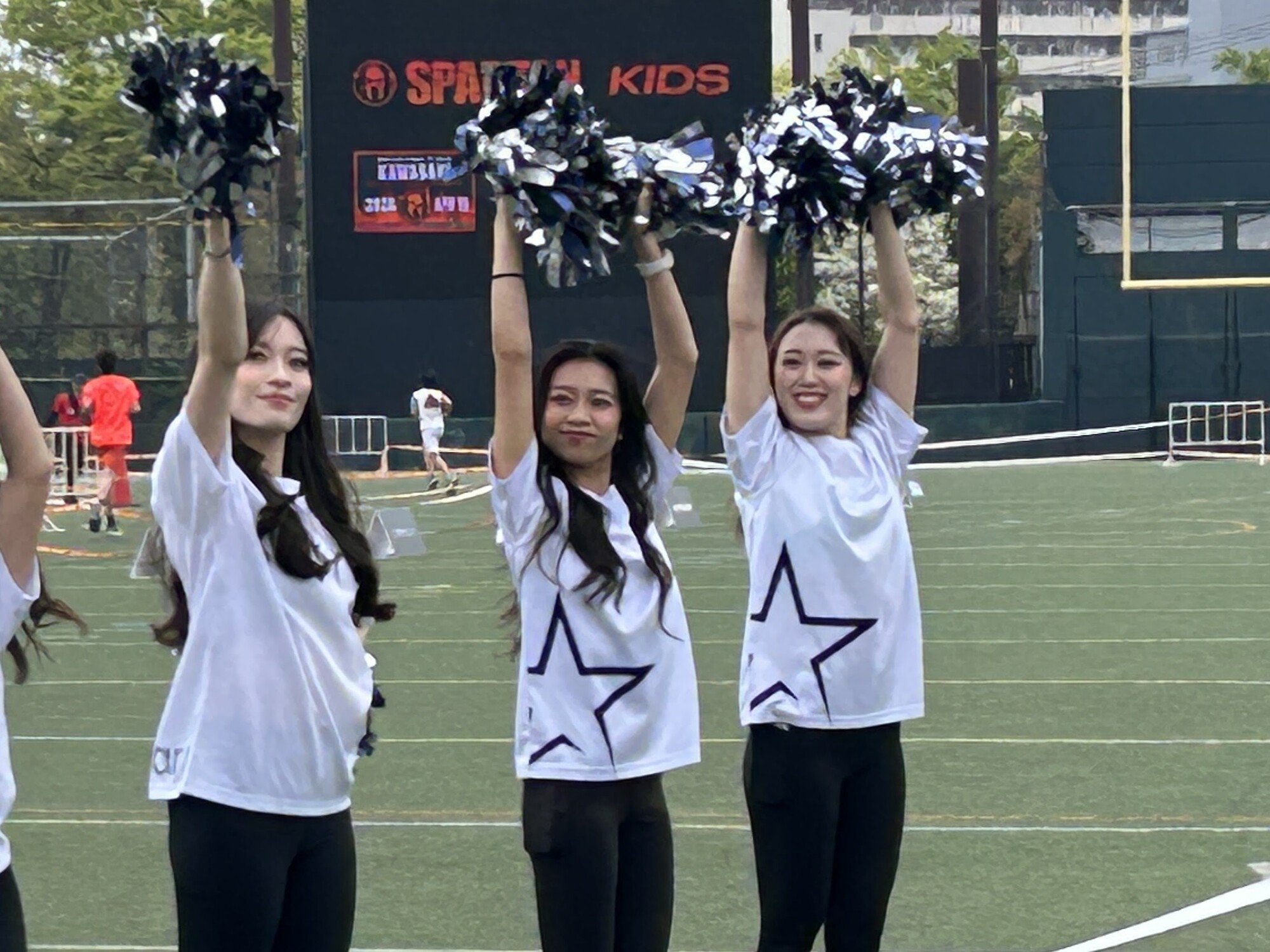当日は、チアリーダーがレースに挑戦する子どもたちへ声援を送り、会場を盛り上げました。また、ブースエリアでは、選手がQBチャレンジのサポートを行い、多くの子どもたちにアメリカンフットボールの楽しさを体験していただきました。